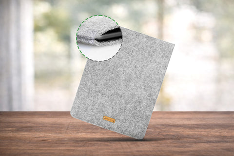 Please specify when ordering if you use a case, cover, or keyboard. We will then make the sleeve accordingly larger. We can also accommodate a pen.